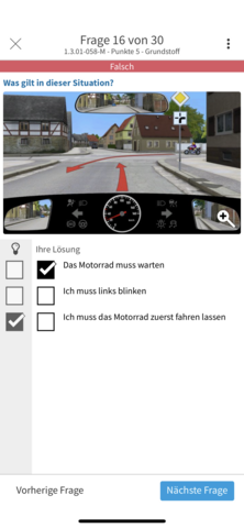 Es ist im übrigen völlig Wurst. 1301-129-M Wie verhalten Sie sich hier richtig. Was gilt in dieser Situation Ich muss das Motorrad zuerst fahren lassen.